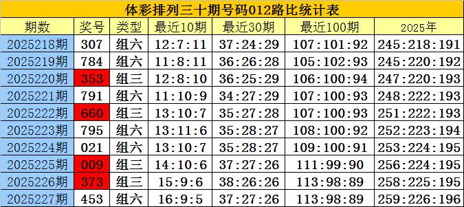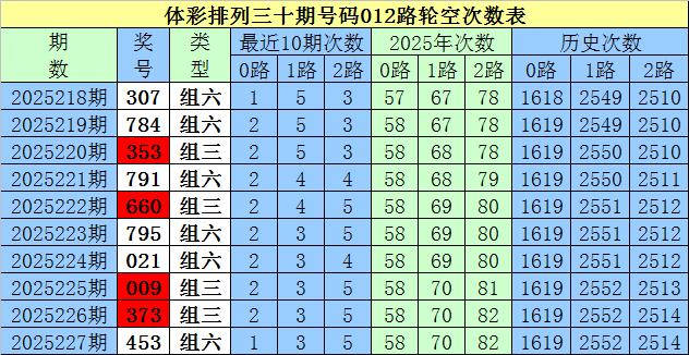 开奖回顾:排列三第2025227期奖号为:453,号码012路比为1:1:1。